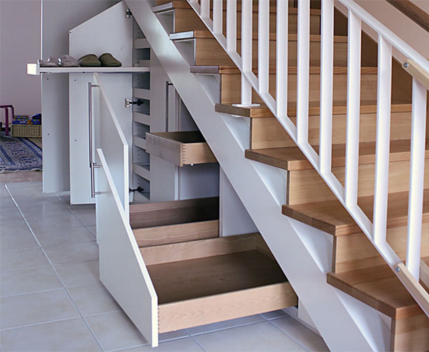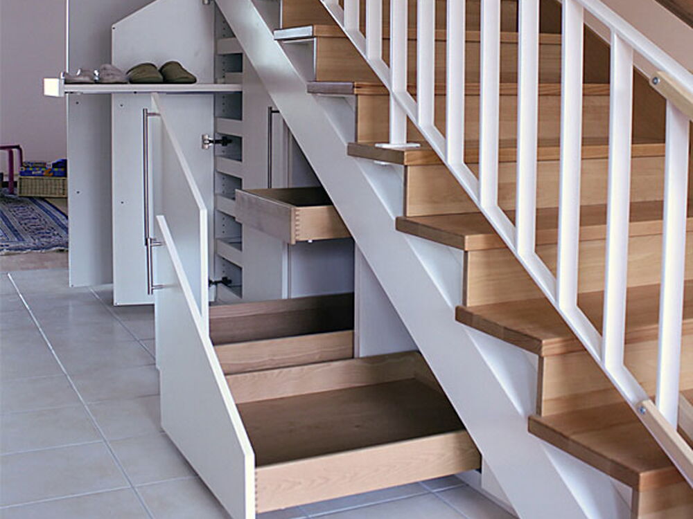 Holztreppe mit Einbauschränken -